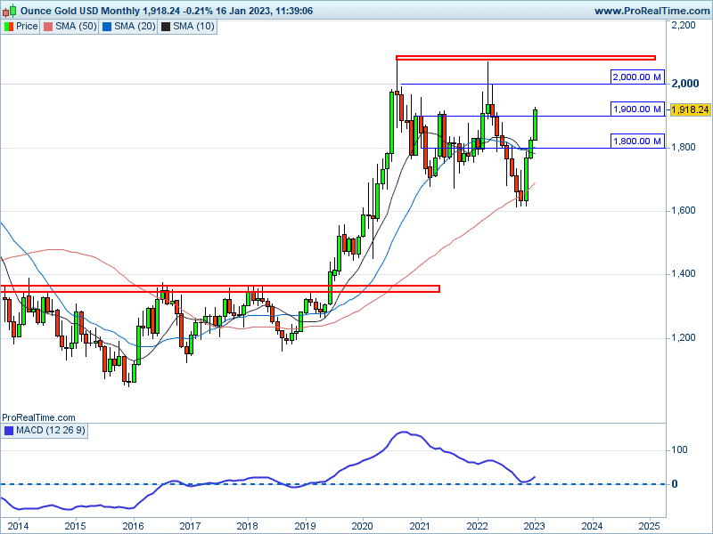 Since November 2022, Gold has aggressively climbed back up to $1,900 in an almost straight line. It should be noted that while the global markets were dropping throughout 2022, so was Gold.