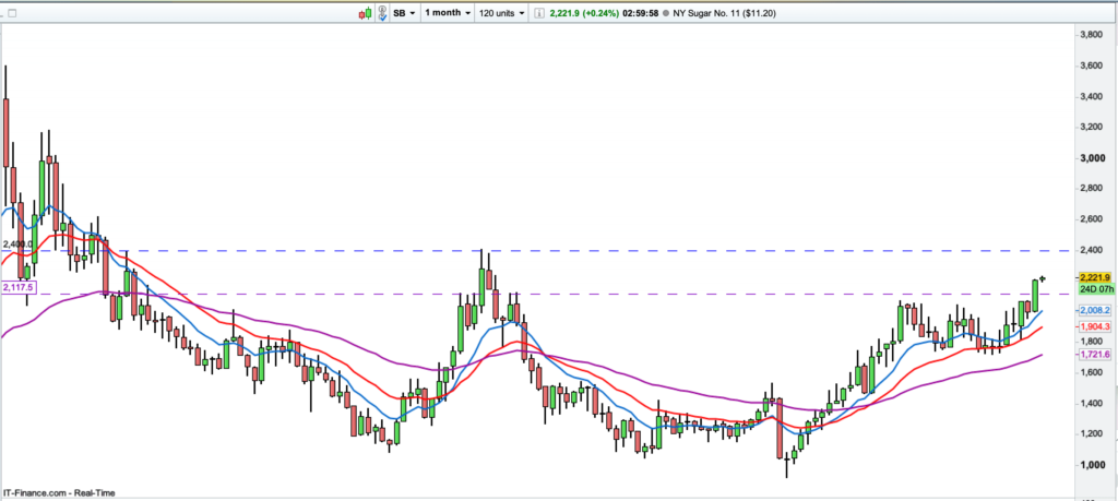 Sugar has enjoyed a strong bullish momentum on the Daily, Weekly and the Monthly