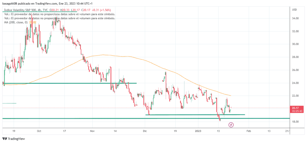 El índice del miedo o de la volatilidad sigue en zona de mínimos y soporte. Seguimos viendo subidas en bolsas americanas por lo que este activo sigue cayendo por la correlación inversa que tienen. Esta semana tenemos la presentación de resultados de las grandes empresas del SP500, y los grandes bancos de inversión especulan que pueden salir peor de lo que se esperaba.