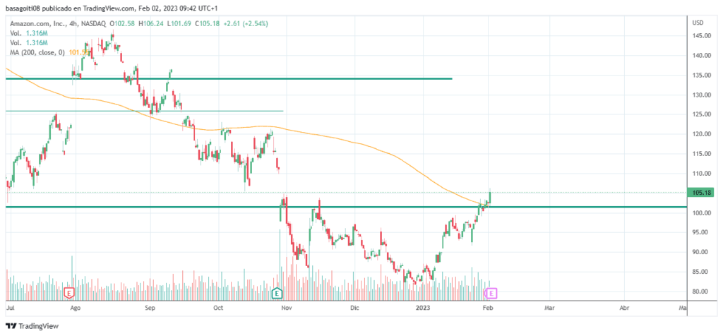 Teniendo este contexto de posibles subidas, vamos a fijarnos en lo que nos muestra el gráfico. Vemos cómo se está formando una posible acumulación y cómo el último movimiento ha roto una zona de resistencias (nivel clave y media de 200 sesiones) mostrando fortaleza. En la apertura americana buscaré retrocesos para dejar una compra previa a la conference call, siempre con su stop de protección de riesgo. Recuerdo que esto no es una recomendación de compra y que cada uno debe realizar sus propios análisis.