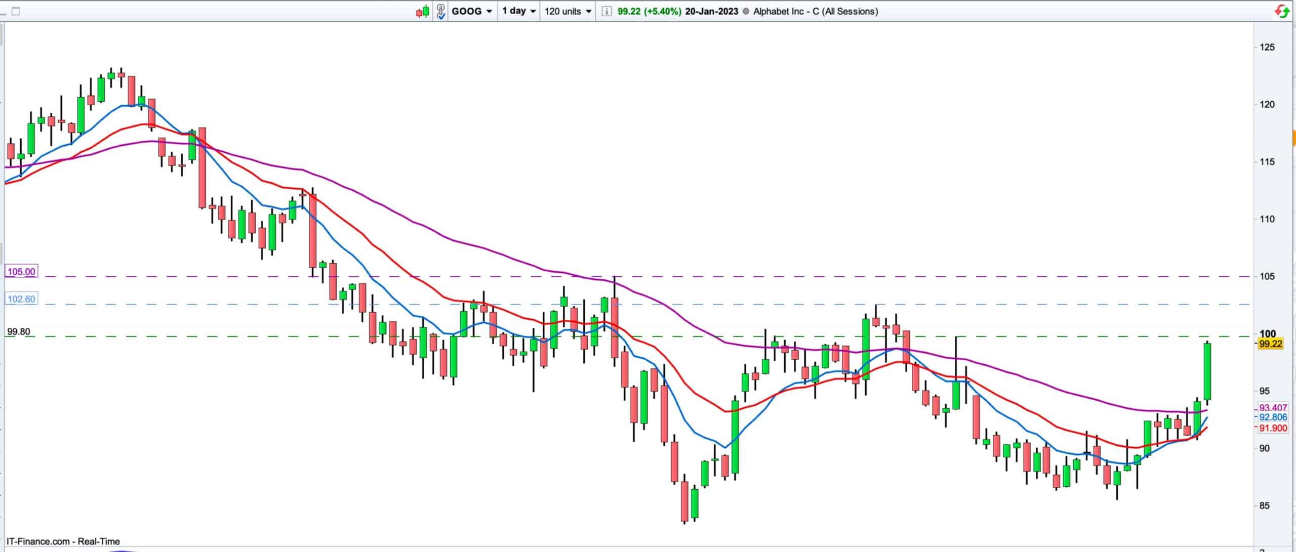 work the monthly level of 105 which is also around the 50% Fibonacci retracement on the