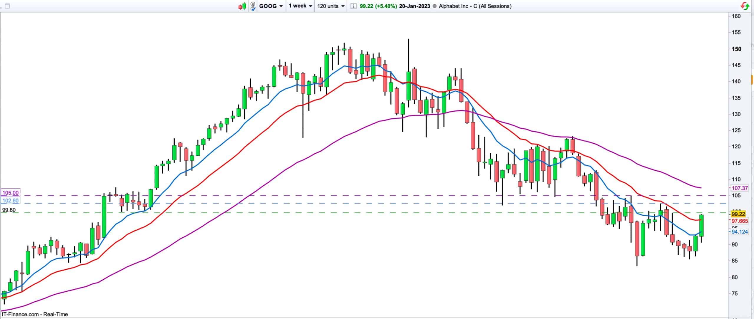 is also around the psychological level of the 100 mark. The weekly chart has broken the