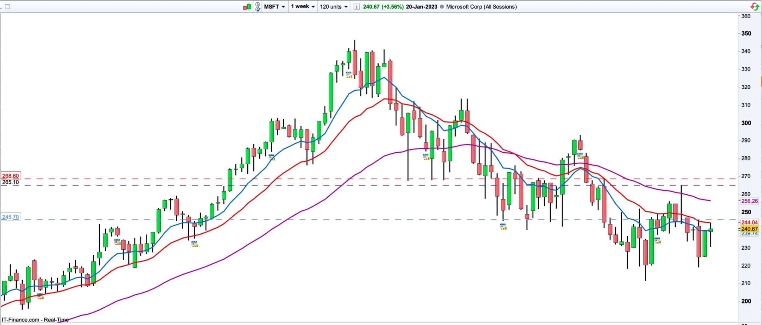 Microsoft bulls have more ground to cover before reaching the area of the Weekly swing