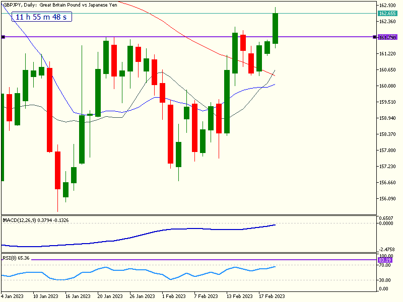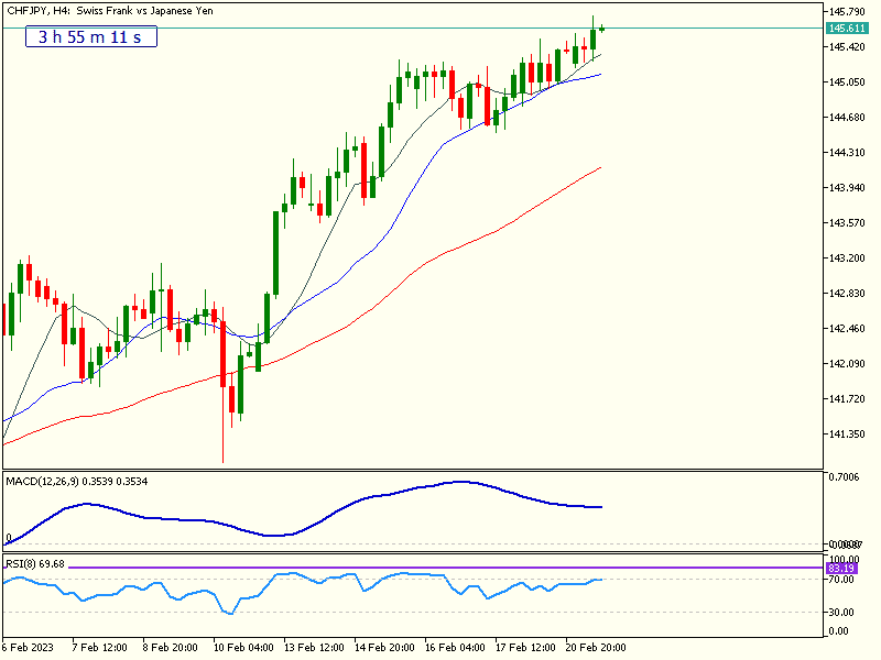 1. CHFJPY’s 4-hour timeframe is also enjoying solid gains.