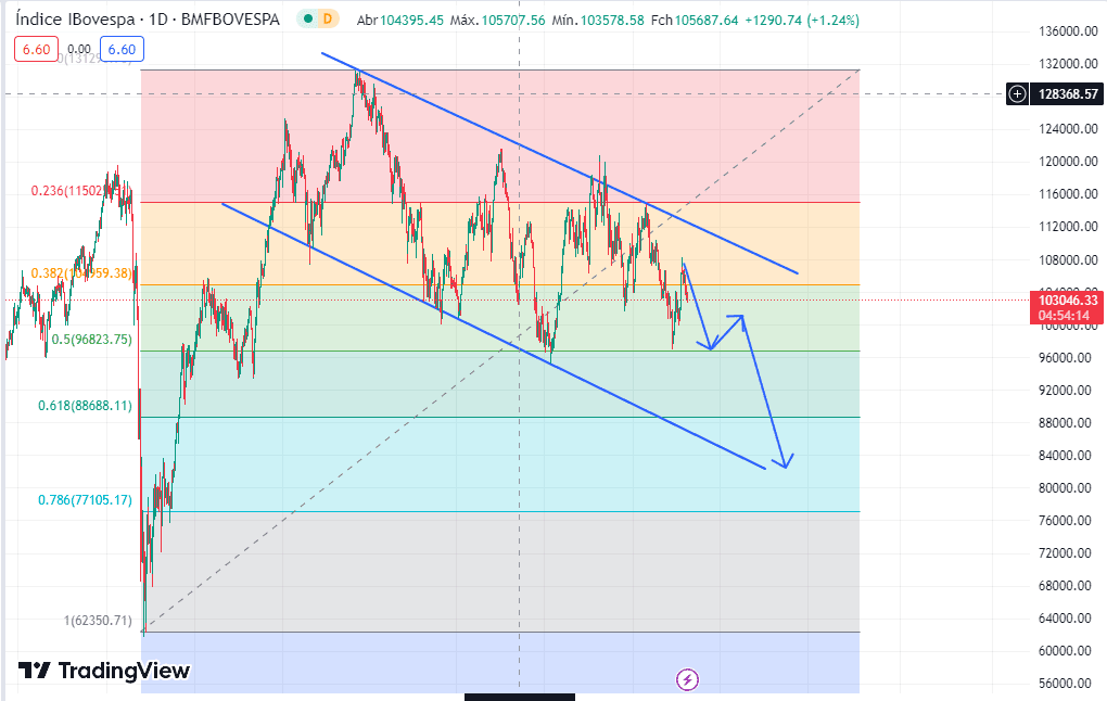 Após abrir aos 103.946,58 pontos e atingir mínima aos 102.748,54 pontos (-1,15%), o Ibovespa reduziu um pouco o ritmo de baixa. Em Nova York, o Dow Jones diminuía a queda, mas os juros dos Treasuries aceleravam as perdas.