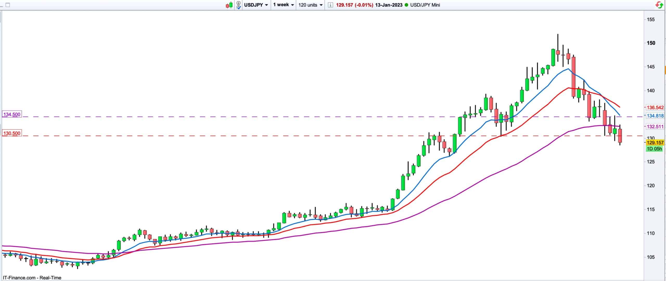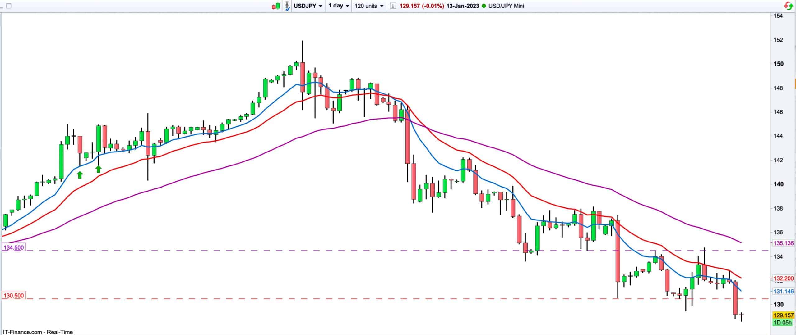 has now traded lower again, and this time also closed below the 130.5 level for the first