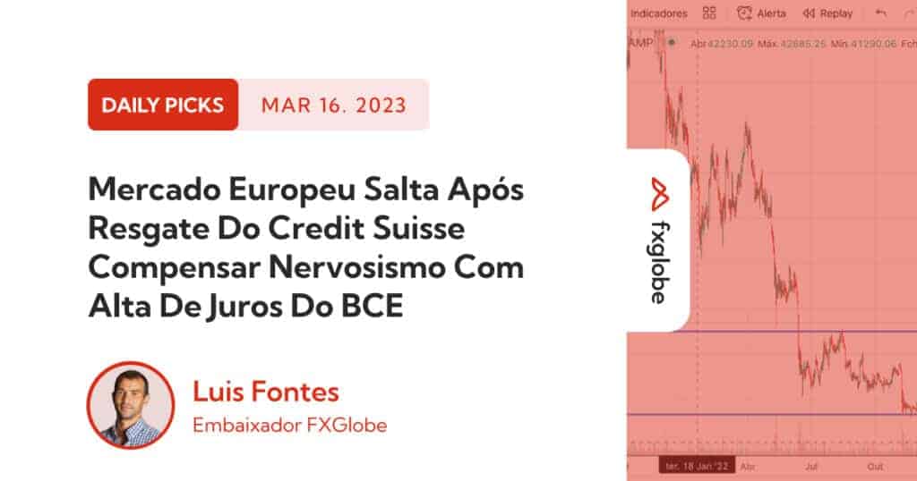As ações europeias saltaram nesta quinta-feira, quando uma ajuda do banco central suíço para o CreditSuisse (SIX:CSGN) contribuiu para aliviar os temores de uma crise bancária global, o que compensou preocupações em torno do grande aumento de 0,50 ponto percentual na taxa de juros do Banco Central Europeu.