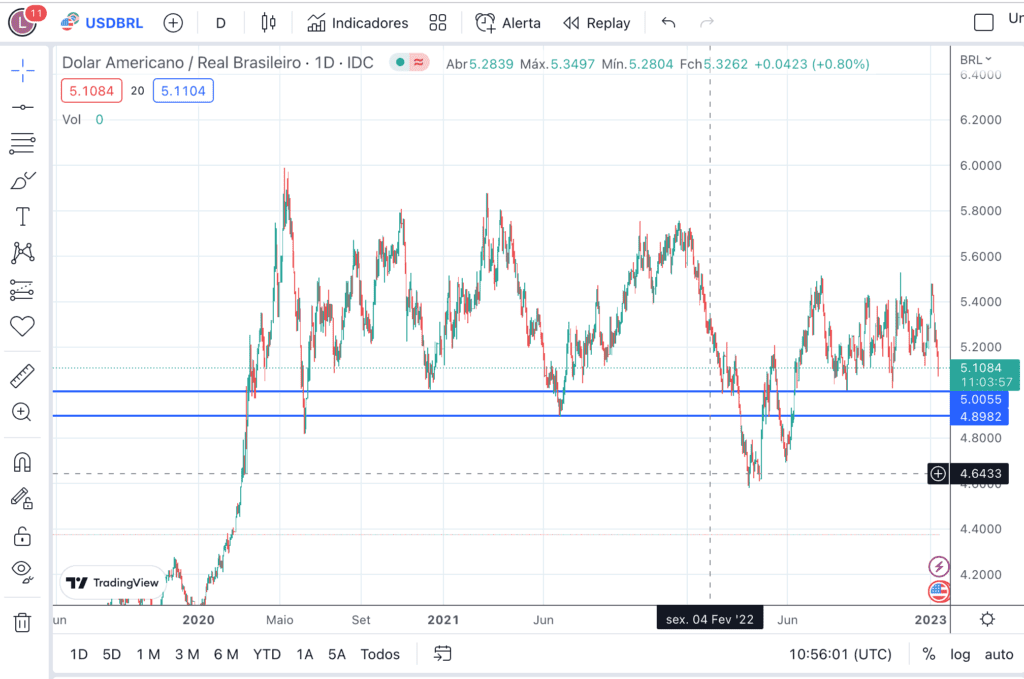 O par USD/BRL se encontra agora em região forte de suporte analisando o gráfico diário, e eu te pergunto? Você está comprando? Ou acreditando demais nas propostas do novo governo?