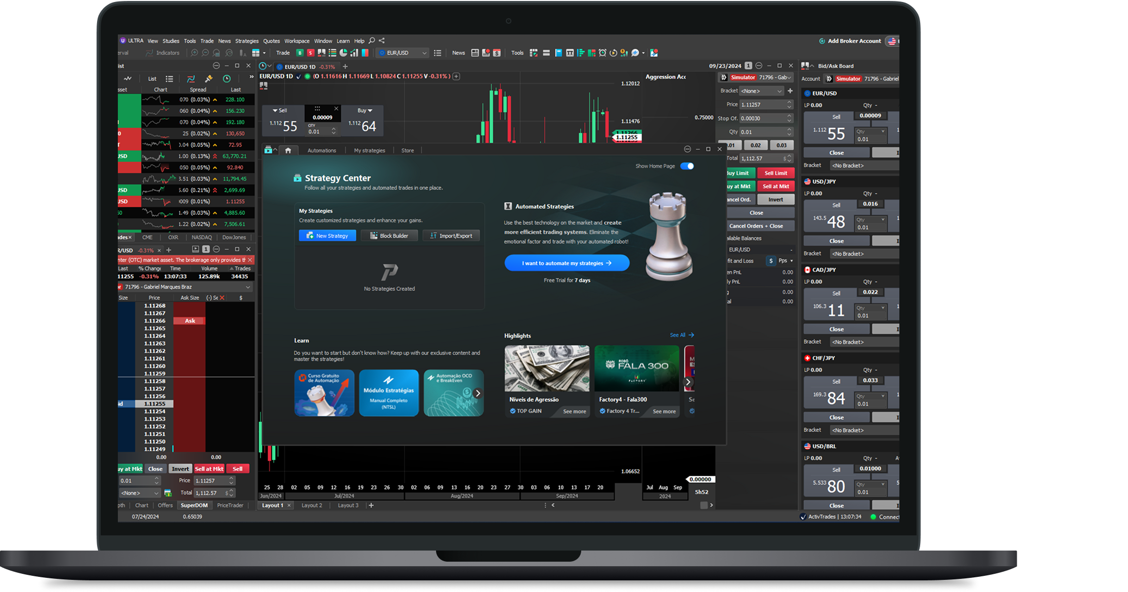 Quer estejas a negociar acções, futuros, forex ou outros activos financeiros, a tecnologia da Nelogica garante experiências de negociação superiores para utilizadores individuais e institucionais.
