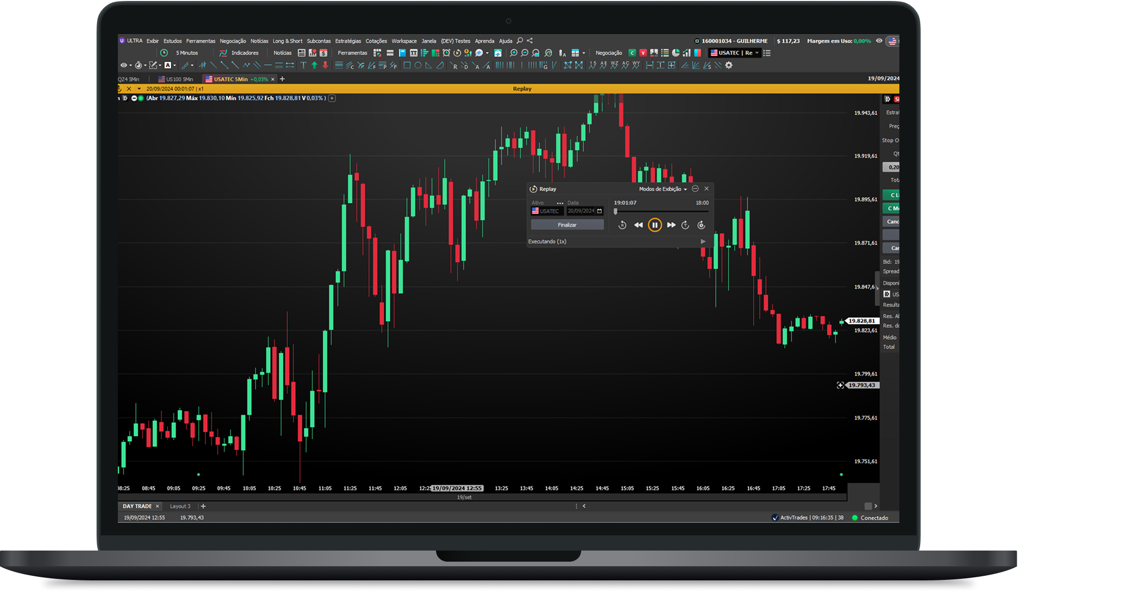 Com essa ferramenta, você pode facilmente usar o passado do mercado para construir seus resultados futuros. Escolha o dia e horário e opere como se fosse ao vivo, aperfeiçoando sua técnica para buscar lucros maiores.