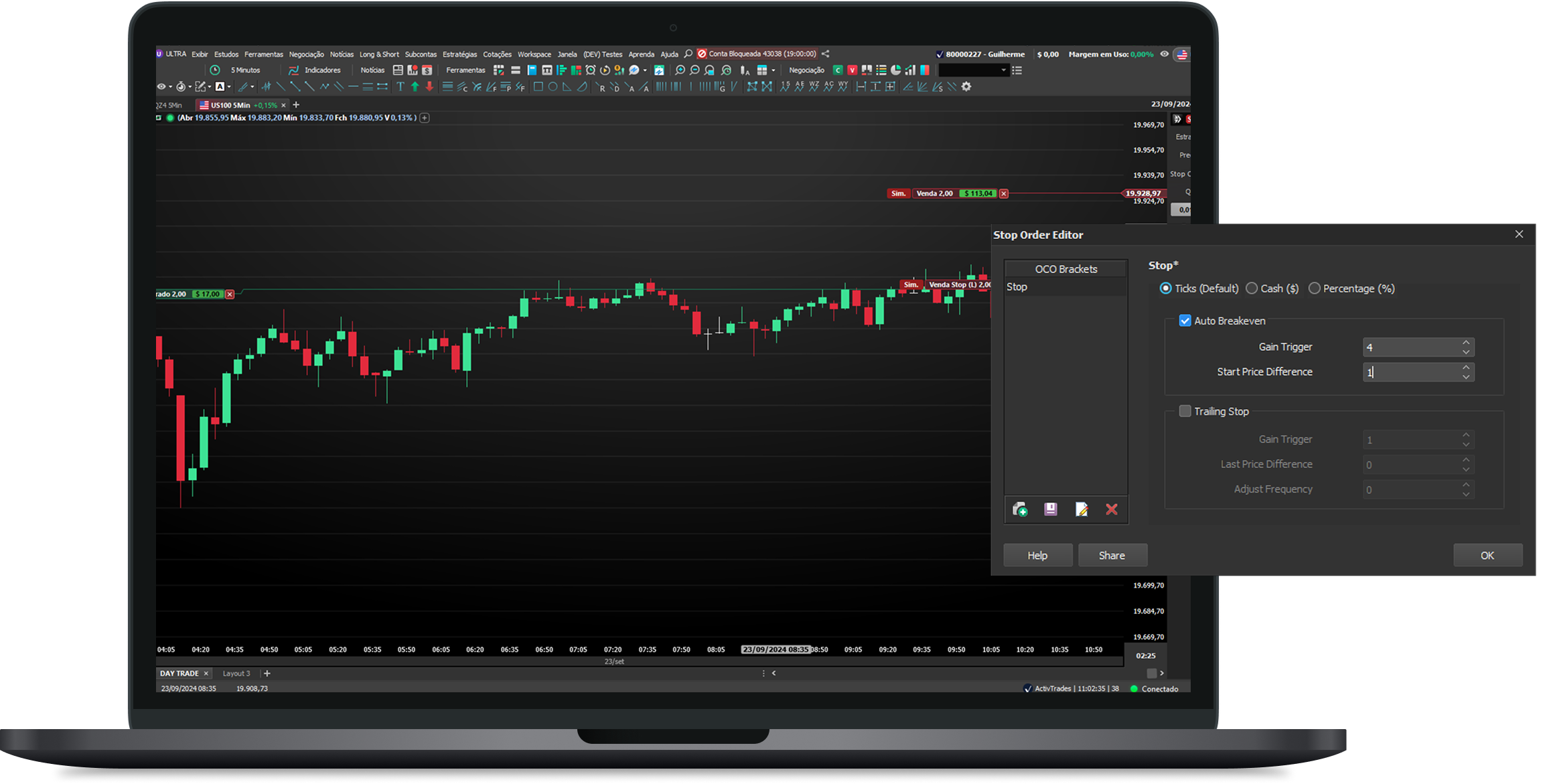 É fácil se sentir mais seguro ao gerenciar suas operações automaticamente, colocando o stop no nível de entrada ou até mesmo acompanhando o lucro com as ordens de auto breakeven e trailing stop.