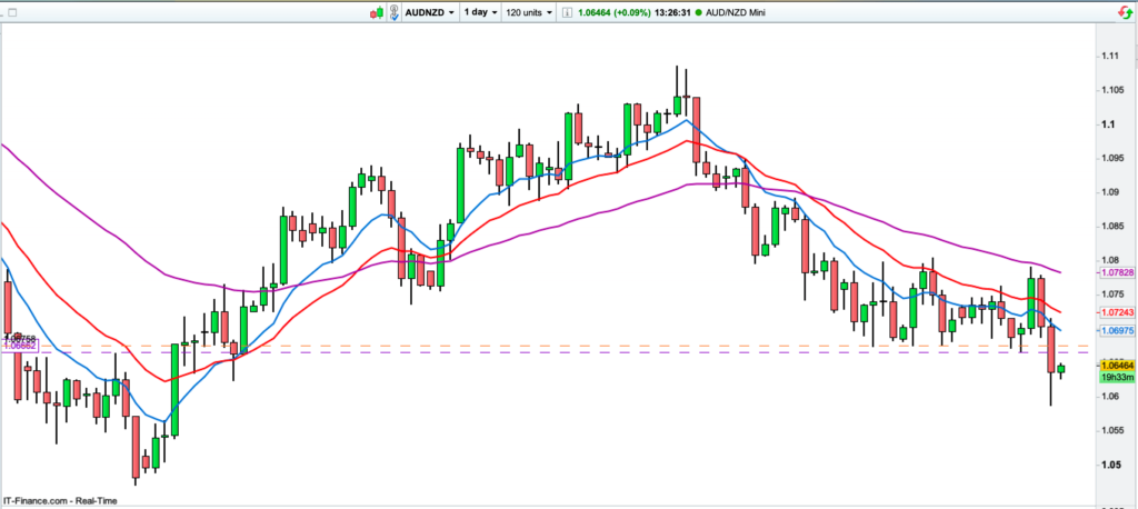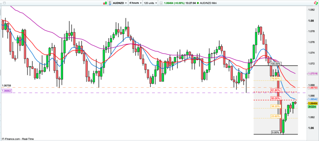 The divergence in outlook between the RBA and the RBNZ saw the market breaking and closing below the support level of the 1.0670 area, confirming a downtrend on the 4hr chart, and a Lower Low on the Daily chart.